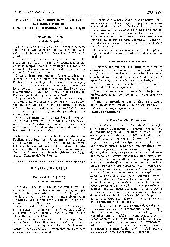Arquitectura Aqui (2025) 1976 MinAdmInt-ObrasPub-Hab-Urb-Const Portaria782 GCOM DG303 31Dez1976.pdf. Accessed on 09/04/2026, in https://arquitecturaaqui.eu/en/documentation/docs/61223/1976-minadmint-obraspub-hab-urb-const-portaria782-gcom-dg303-31dez1976-pdf