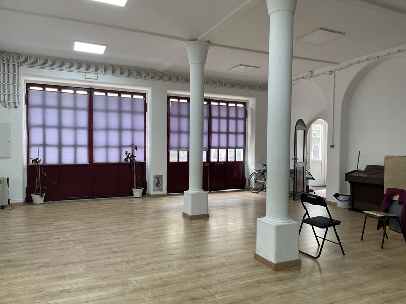 No piso de baixo havia uma cave que era o bar dos bombeiros. Foram instalados sanitários e uma despensa no amplo salão do piso térreo, que ocupa o espaço da antiga garagem.